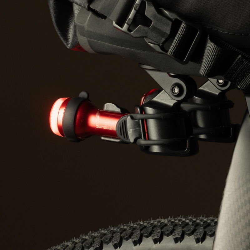 It is possible to mount a seat-post strip light to the Rack, just as you would your regular seat post, but may rub the Rack finish after heavy use. The AP20 top bag has loops made for certain clip-on lights, or we offer Seatpost mounted light mounts, and regular rack mounted light mounts, which affixes to the AP20 to allow you to mount your rear light directly to the pack.